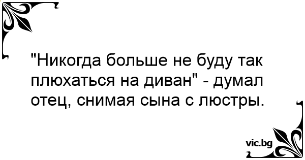 "Никогда больше не буду так плюхаться на диван" - думал отец, снимая сына с люстры.