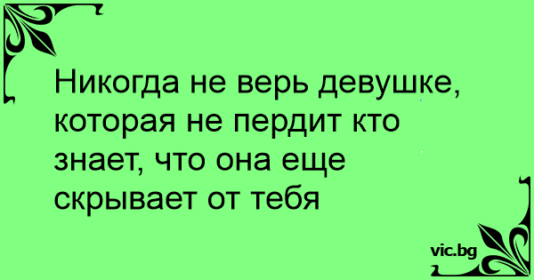 Никогда не верь девушке, которая не пердит кто знает, что она еще скрывает от тебя