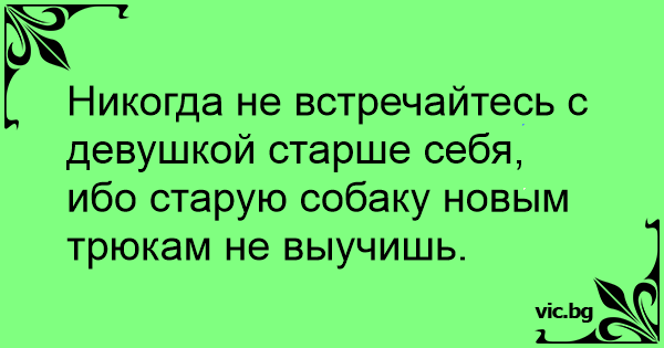 Никогда не встречайтесь с девушкой старше себя, ибо старую собаку новым трюкам не выучишь.