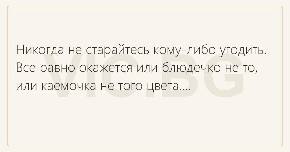 Никогда не старайтесь кому-либо угодить. Все равно окажется или блюдечко не то, или каемочка не того цвета....