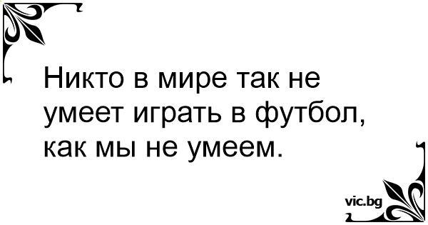 Никто в мире так не умеет играть в футбол, как мы не умеем.