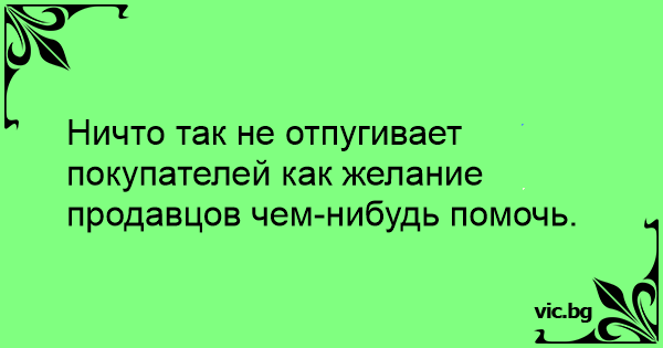 Ничто так не отпугивает покупателей как желание продавцов чем-нибудь помочь.