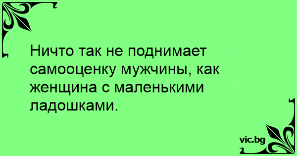 Ничто так не поднимает самооценку мужчины, как женщина с маленькими ладошками.
