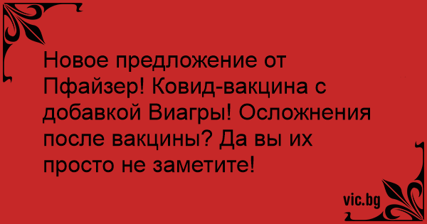 Новое предложение от Пфайзер! Ковид-вакцина с добавкой Виагры! Осложнения после вакцины? Да вы их просто не заметите!