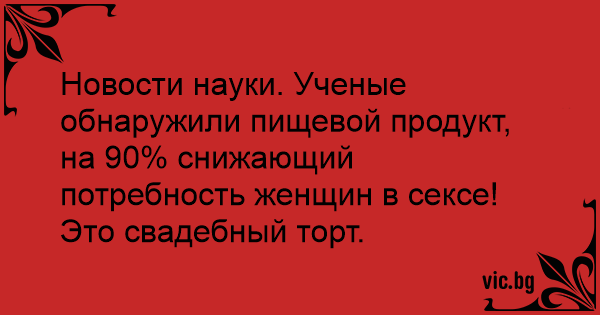 Новости науки. Ученые обнаружили пищевой продукт, на 90% снижающий потребность женщин в сексе! Это свадебный торт.
