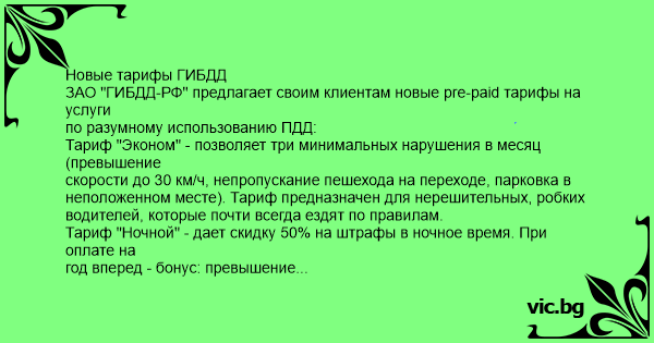 Новые тарифы ГИБДД ЗАО "ГИБДД-РФ" предлагает своим клиентам новые pre-paid тарифы на услуги по разумному использованию ПДД: