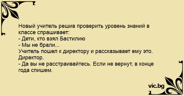 Новый учитель решив проверить уровень знаний в классе спрашивает: