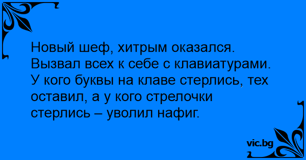 Новый шеф, хитрым оказался. Вызвал всех к себе с клавиатурами. У кого буквы на клаве стерлись, тех оставил, а у кого стрелочки стерлись – уволил нафиг.