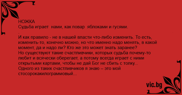 НОЖКА Судьба играет нами, как повар яблоками и гусями.