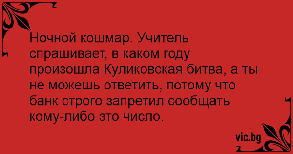 Ночной кошмар. Учитель спрашивает, в каком году произошла Куликовская битва, а ты не можешь ответить, потому что банк строго запретил сообщать кому-либо это число.