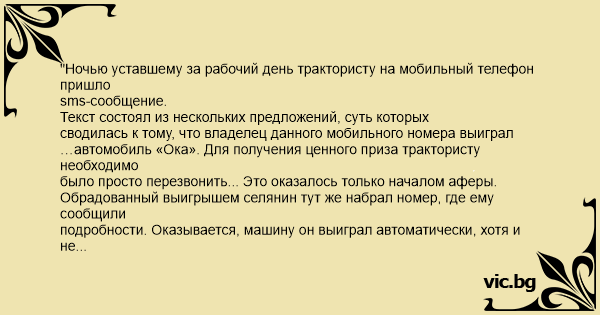 "Ночью уставшему за рабочий день трактористу на мобильный телефон пришло sms-сообщение.