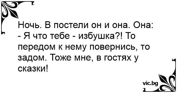 - Я что тебе - избушка?! То передом к нему повернись, то задом. Тоже мне, в гостях у сказки!