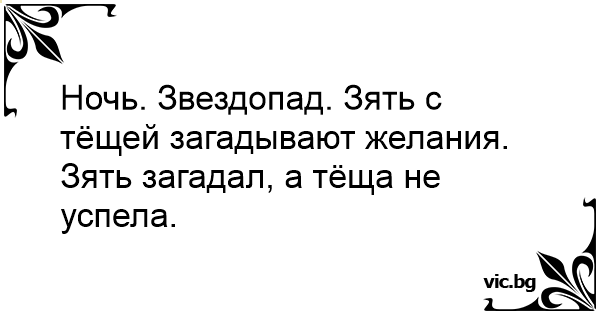 Ночь. Звездопад. Зять с тёщей загадывают желания.