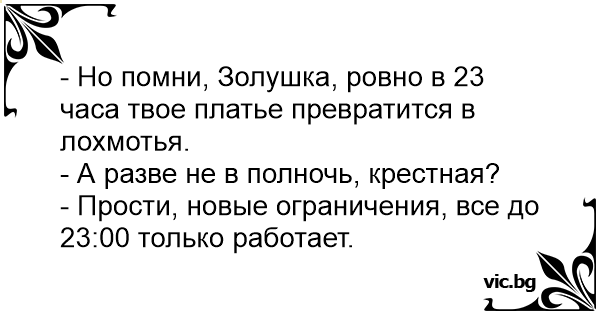 - Но помни, Золушка, ровно в 23 часа твое платье превратится в лохмотья.