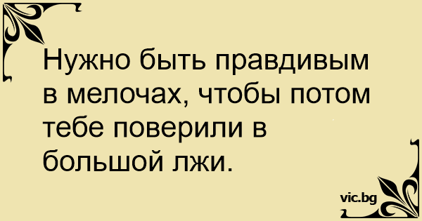 Нужно быть правдивым в мелочах, чтобы потом тебе поверили в большой лжи.