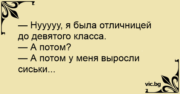 - Нууууу, я була відмінницею до дев'ятого класу. - А потім? - А потім у мене виросли груди ...