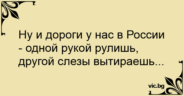 Ну и дороги у нас в России - одной рукой рулишь, другой слезы вытираешь...