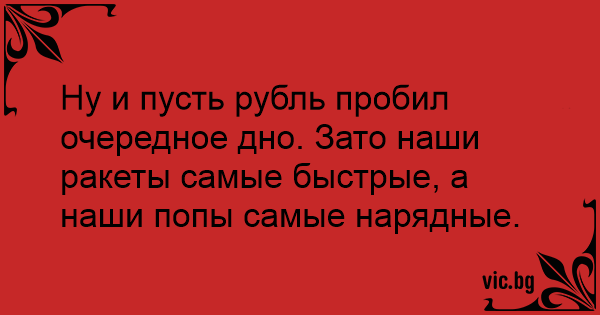Ну и пусть рубль пробил очередное дно. Зато наши ракеты самые быстрые, а наши попы самые нарядные.