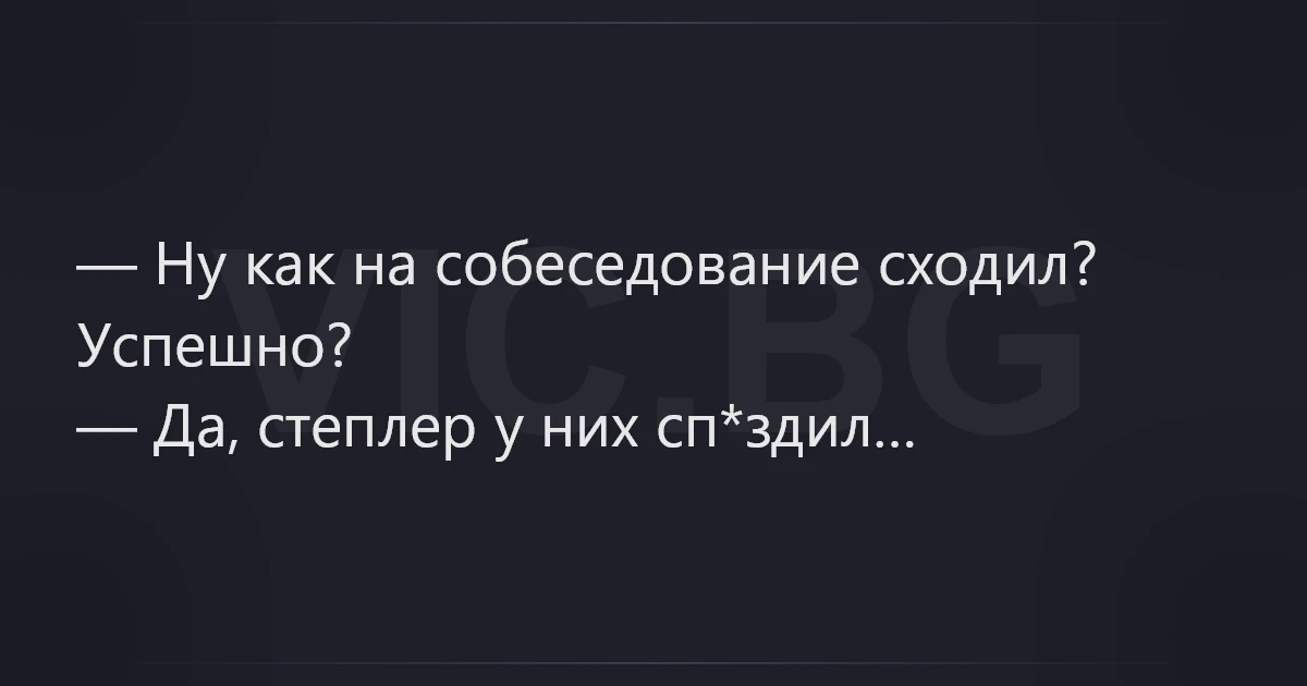 — Ну как на собеседование сходил? Успешно? — Да, степлер у них сп*здил…