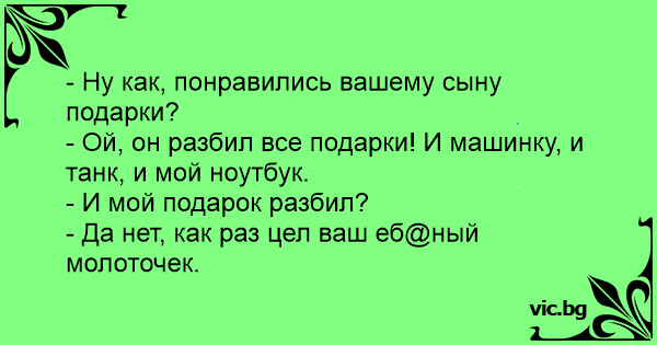 - Ой, он разбил все подарки! И машинку, и танк, и мой ноутбук.