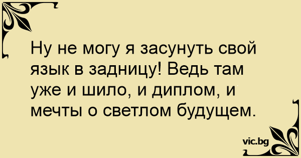 Ну не могу я засунуть свой язык в задницу! Ведь там уже и шило, и диплом, и мечты о светлом будущем.