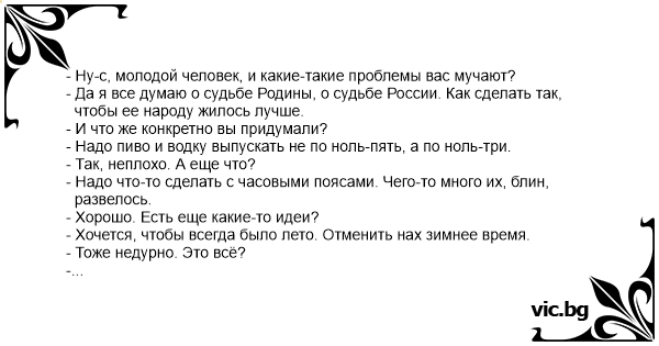 - Надо пиво и водку выпускать не по ноль-пять, а по ноль-три.
