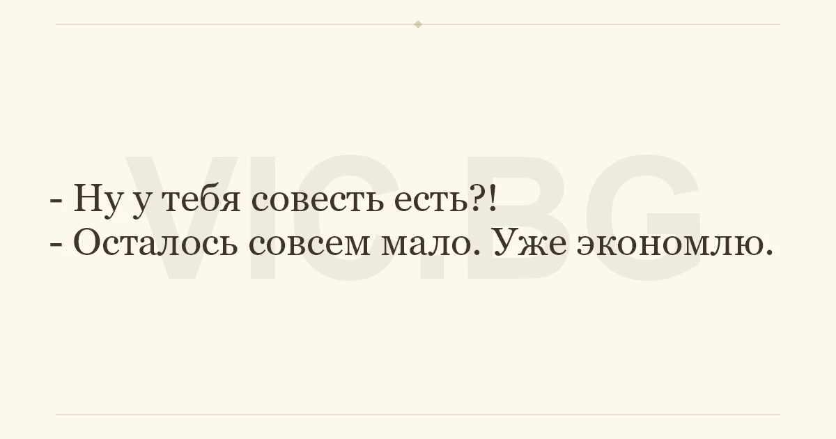 - Ну у тебя совесть есть?! - Осталось совсем мало. Уже экономлю.