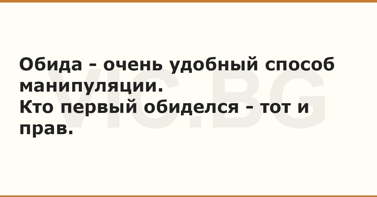 Обида - очень удобный способ манипуляции. Кто первый обиделся - тот и прав.