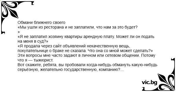 Обмани ближнего своего «Мы ушли из ресторана и не заплатили, что нам за это будет?