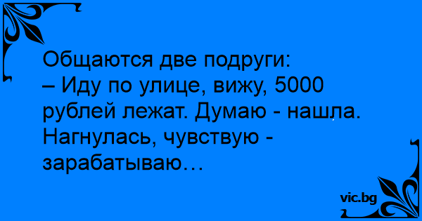 – Иду по улице, вижу, 5000 рублей лежат. Думаю - нашла. Нагнулась, чувствую - зарабатываю…