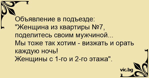 "Женщина из квартиры №7, поделитесь своим мужчиной...