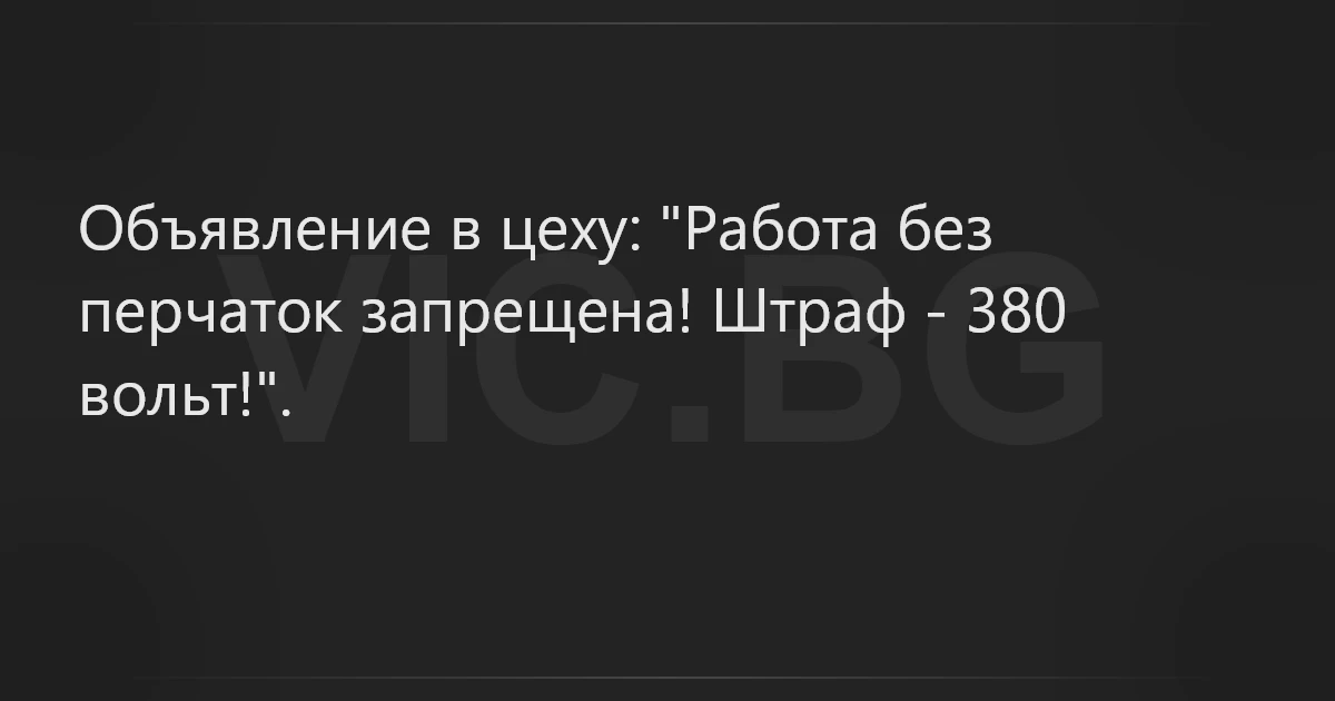 Объявление в цеху: "Работа без перчаток запрещена! Штраф - 380 вольт!".