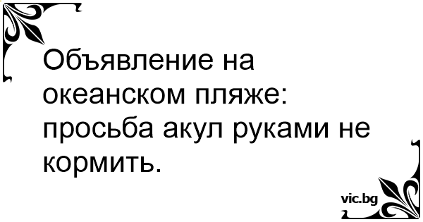 Объявление на океанском пляже: просьба акул руками не кормить.