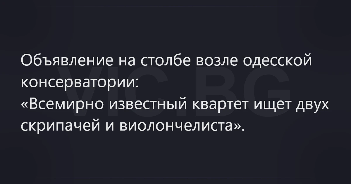Объявление на столбе возле одесской консерватории: «Всемирно известный квартет ищет двух скрипачей и виолончелиста».
