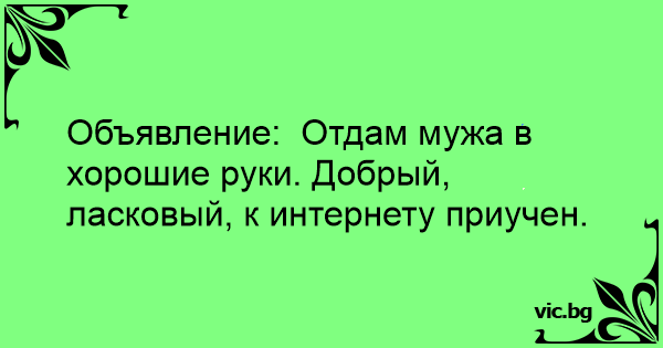 Объявление: Отдам мужа в хорошие руки. Добрый, ласковый, к интернету приучен.