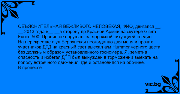 ОБЪЯСНИТЕЛЬНАЯ ВЕЖЛИВОГО ЧЕЛОВЕКАЯ, ФИО, двигался __.