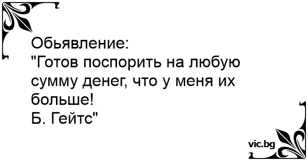 "Готов поспорить на любую сумму денег, что у меня их больше!