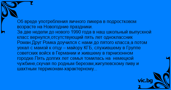 Об вреде употребления яичного ликера в подростковом возрасте на Новогодние праздники.