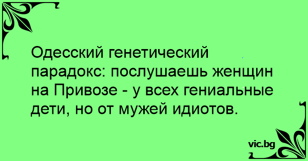 Одесский генетический парадокс: послушаешь женщин на Привозе - у всех гениальные дети, но от мужей идиотов.