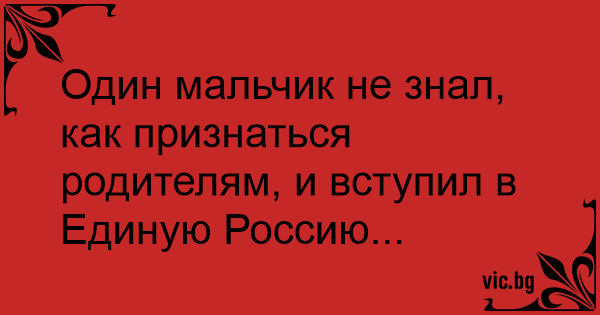 Один мальчик не знал, как признаться родителям, и вступил в Единую Россию...