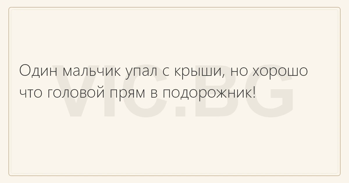 Один мальчик упал с крыши, но хорошо что головой прям в подорожник!