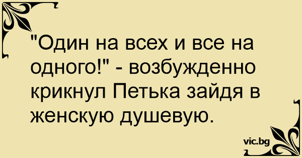 "Один на всех и все на одного!" - возбужденно крикнул Петька зайдя в женскую душевую.