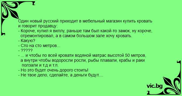 Один новый русский приходит в мебельный магазин купить кровать и говорит продавцу: