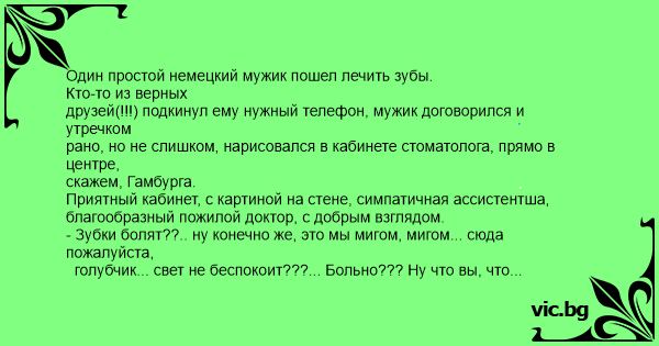 - Ой, доктор, уже все??... Нет, правда??... Совсем не больно... Немного