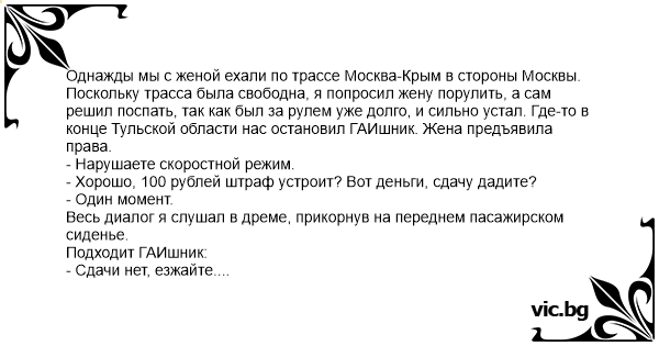 Однажды мы с женой ехали по...