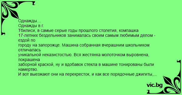 И вот выезжают они на перекресток, и как все порядочные джигиты,