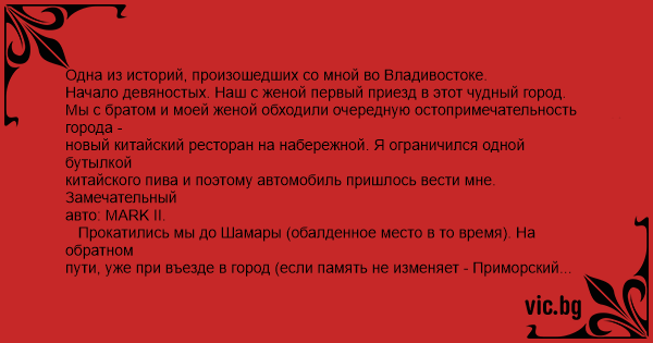 китайского пива и поэтому автомобиль пришлось вести мне. Замечательный
