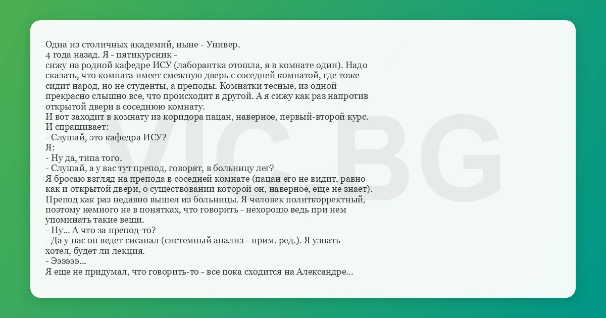 Препод как раз недавно вышел из больницы. Я человек политкорректный,