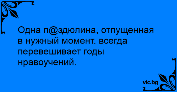 Одна п@здюлина, отпущенная в нужный момент, всегда перевешивает годы нравоучений.