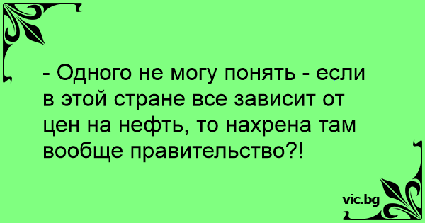 - Одного не могу понять - если в этой стране все зависит от цен на нефть, то нахрена там вообще правительство?!